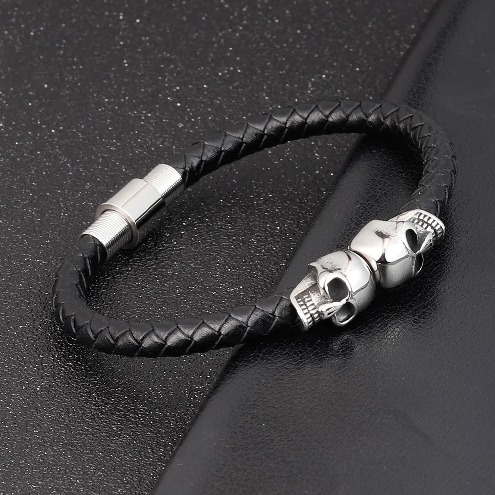 Bracelet Paracorde Homme avec Tête de Mort – Style Biker et Fermoir Magnétique